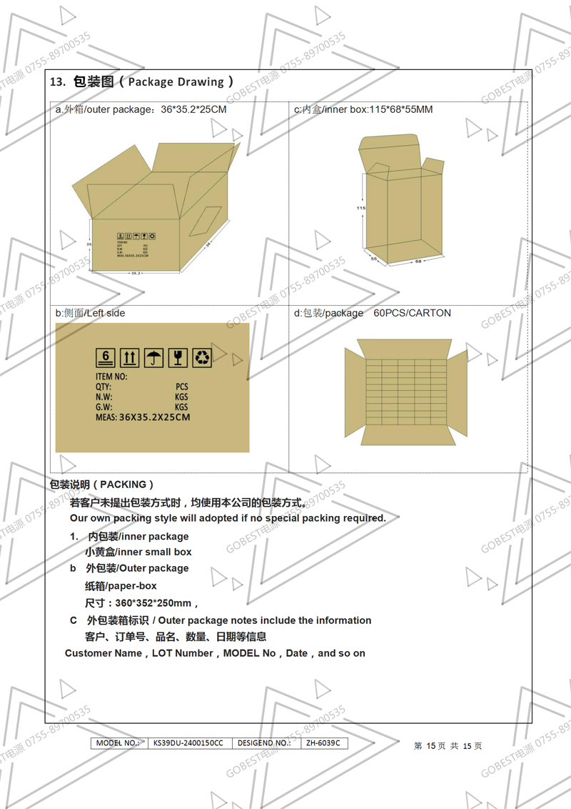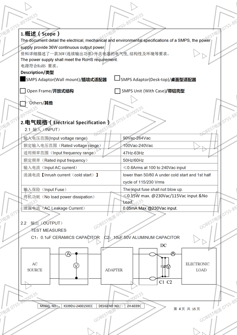 24V1.5A電源適配器規(guī)格書(國標插墻式)