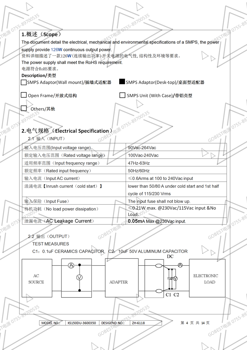24V1.5A電源適配器規(guī)格書(shū)(國(guó)標(biāo)插墻式)