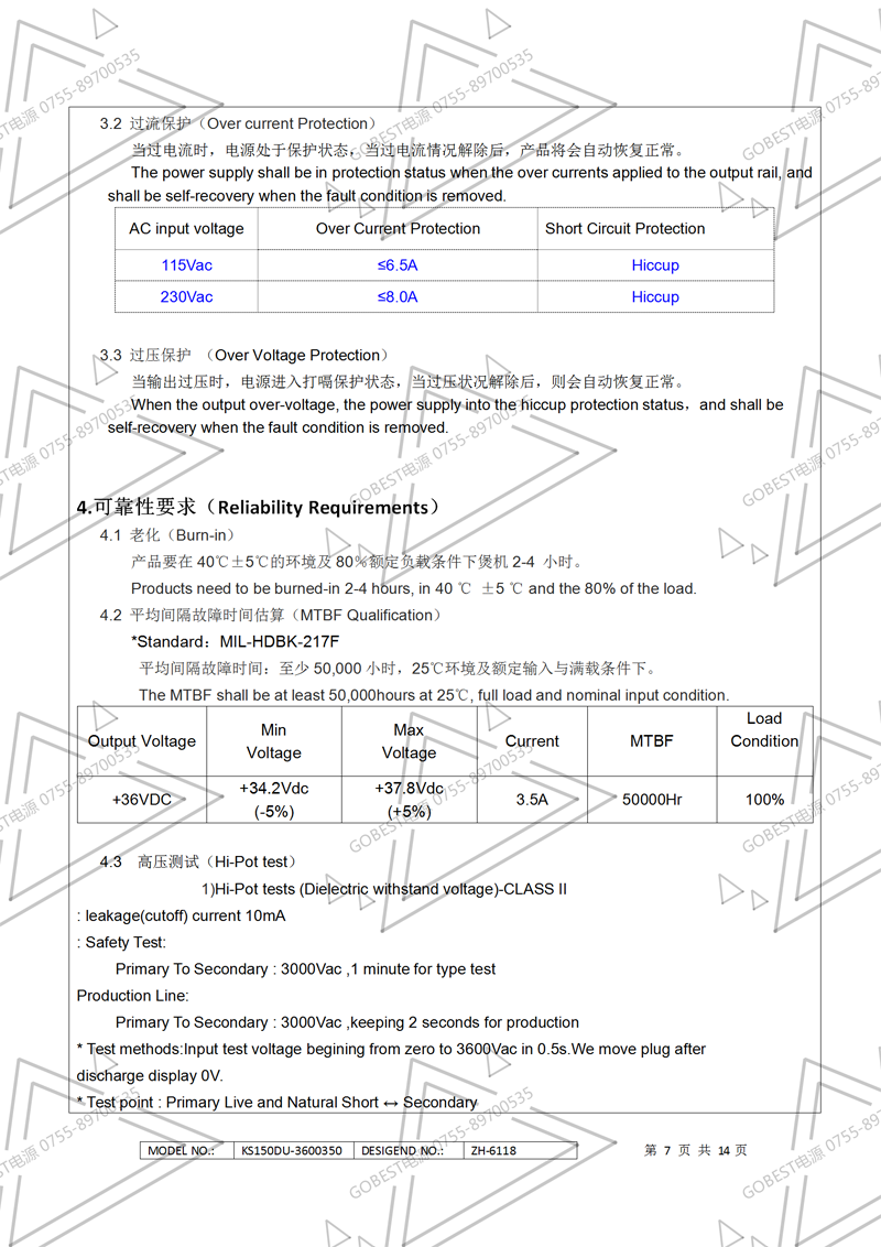 36V3.5A電源適配器規(guī)格書(shū)美規(guī)UL認(rèn)證