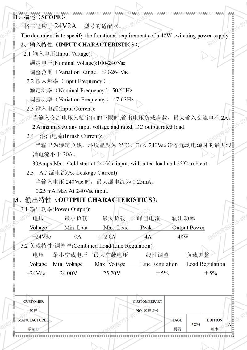 24V6A電源適配器帶PFC電路規(guī)格書(新模具)