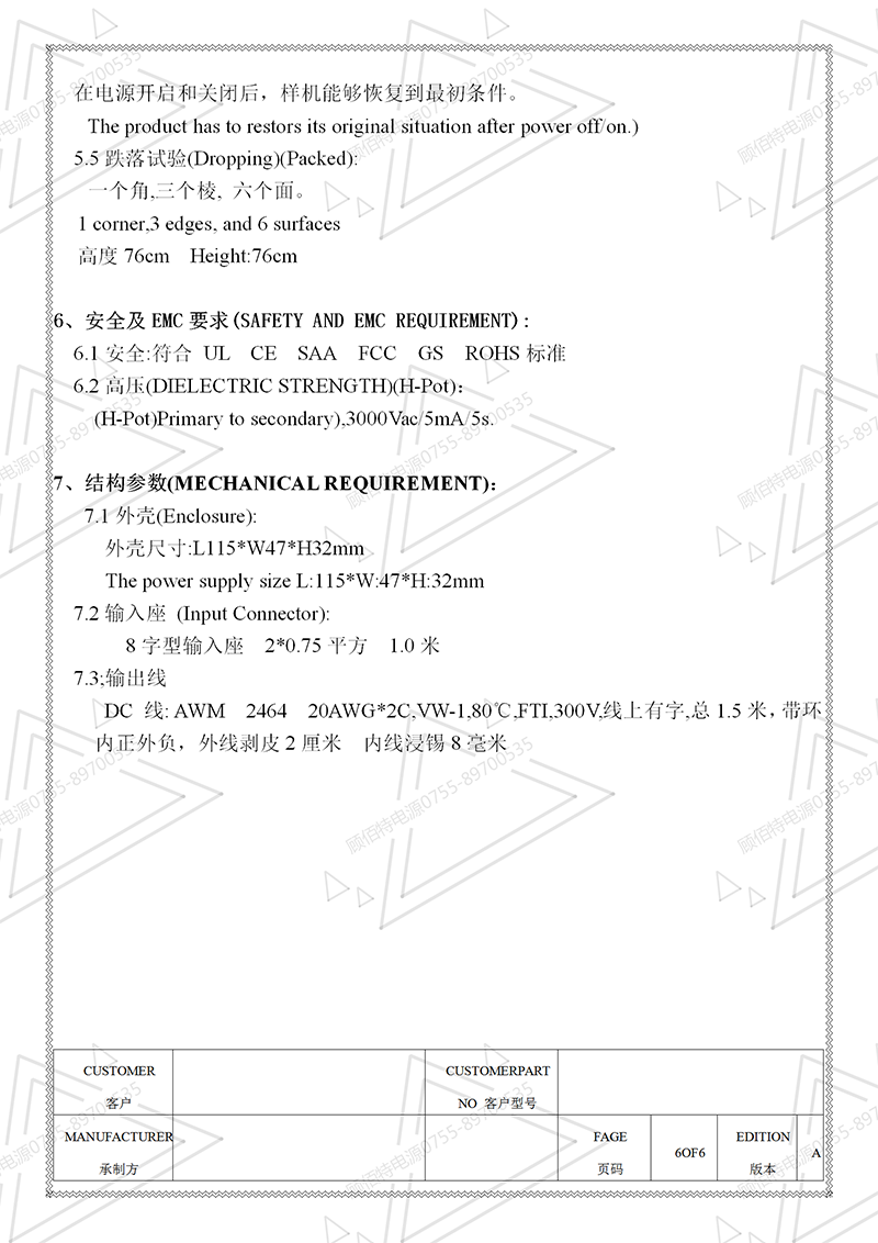 12V1.25A電源適配器規(guī)格書(桌面式)