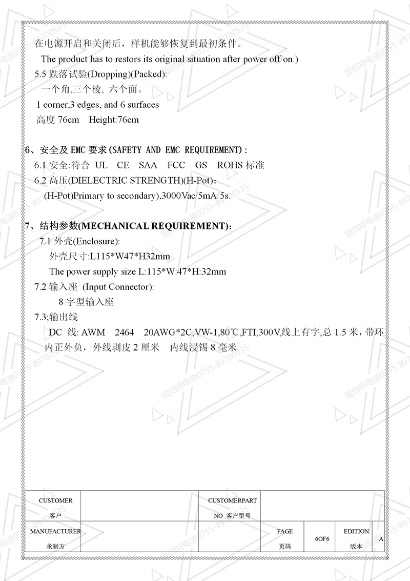 電源規(guī)格書
