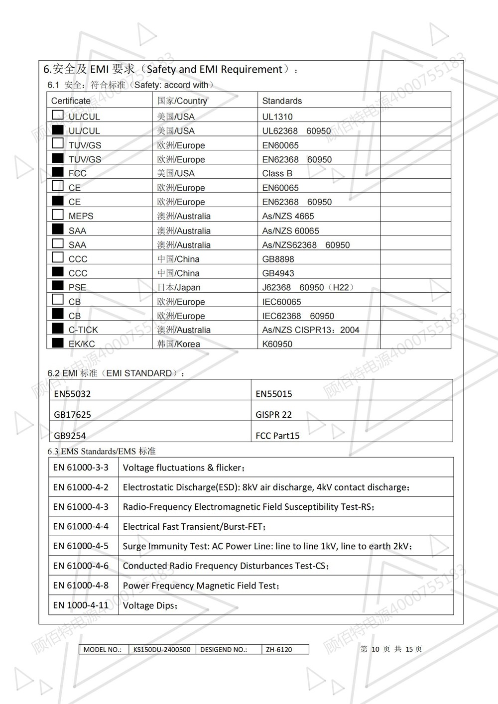 24V5A電源適配器規(guī)格書資料詳細(xì)描述了一款120W(連續(xù)輸出功率)開關(guān)電源的電氣性,結(jié)構(gòu)性及環(huán)境等要求。