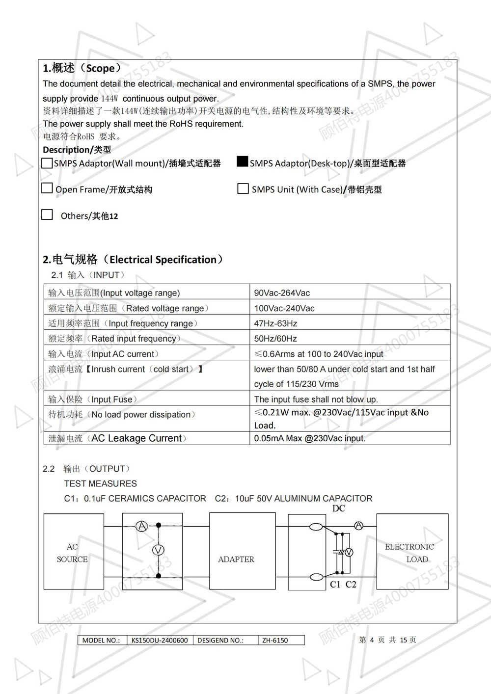 24V6A電源適配器帶PFC電路144W(連續(xù)輸出功率)開(kāi)關(guān)電源的電氣性,結(jié)構(gòu)性及環(huán)境等要求。